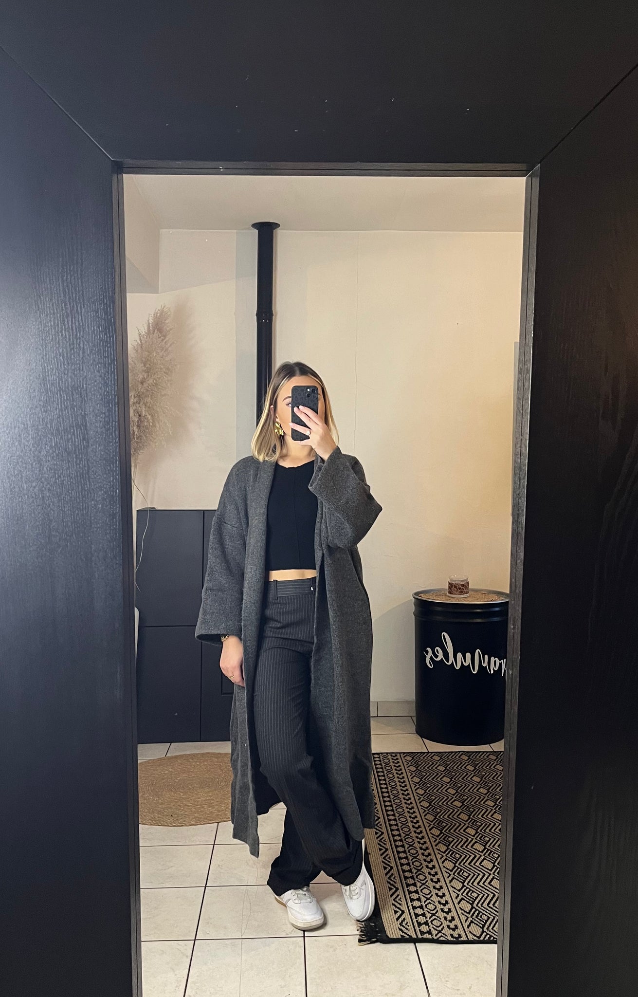 Pantalon à rayures noires et grises